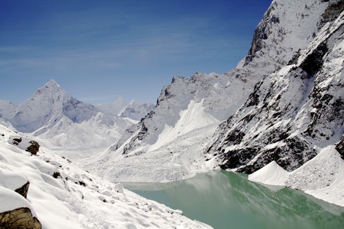Beyond Duglha we trek up a steep terminal moraine of the Khumbu Glacier. We find our way through the rock-strewn slope as we ascend Chupki Lhara, a creepy ridge top with vivid mountains views. At the top of the crest, we will find a pyramid of stones with prayer flags used as memorials to Scott Fischer (American mountaineer) and 10 times Everest submitter Babu Chiri Sherpa (mountain guide from Nepal) who died on a mission to climb Everest. As the trail drops to the Khumbu Glacier moraine, we find ourselves ‘face-to-face’ with several great peaks – Khumbutse, Lingtren, Pumori and Mahalangur Himal. We are now in real ‘Everest’ country but the great mountain still remains hidden. Nuptse looms to the right as the trail crosses the Khumbu Glacier. As we hike along a whispering stream we do not see the Khumbu glacier because of its lateral moraine wall and we now begin to feel the thin air and the breathing gets difficult due to high altitude. We bunk out at a local lodge in Lobuche for the night